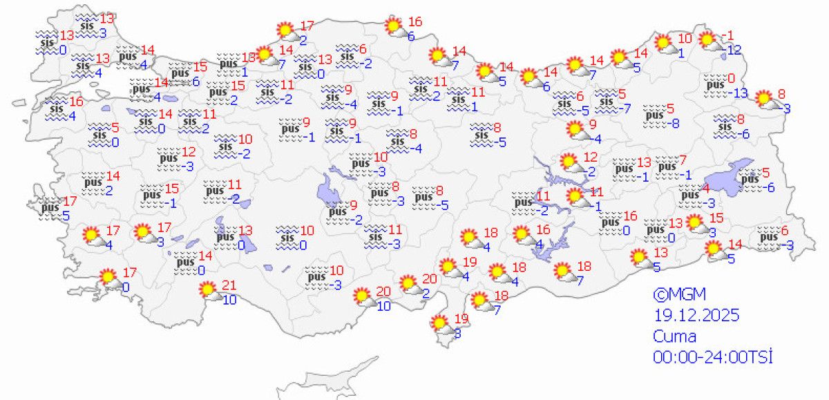 Pus özellikle İç Anadolu ve Doğu Anadolu’da sis görüş mesafesini düşürebilir.