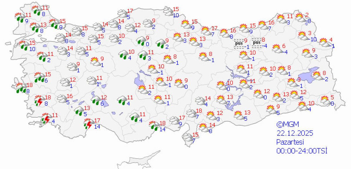 Özellikle iç ve doğu kesimlerde yaygın pus ve sis görülürken, sabah ile gece saatlerinde buzlanma riski taşıyacak.