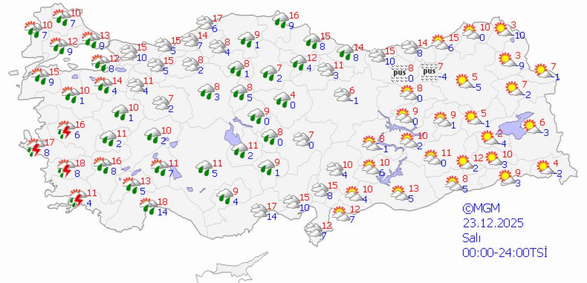 Sıcaklıklar batıda 15-18 derece, doğuda 5-10 derece seviyelerinde.